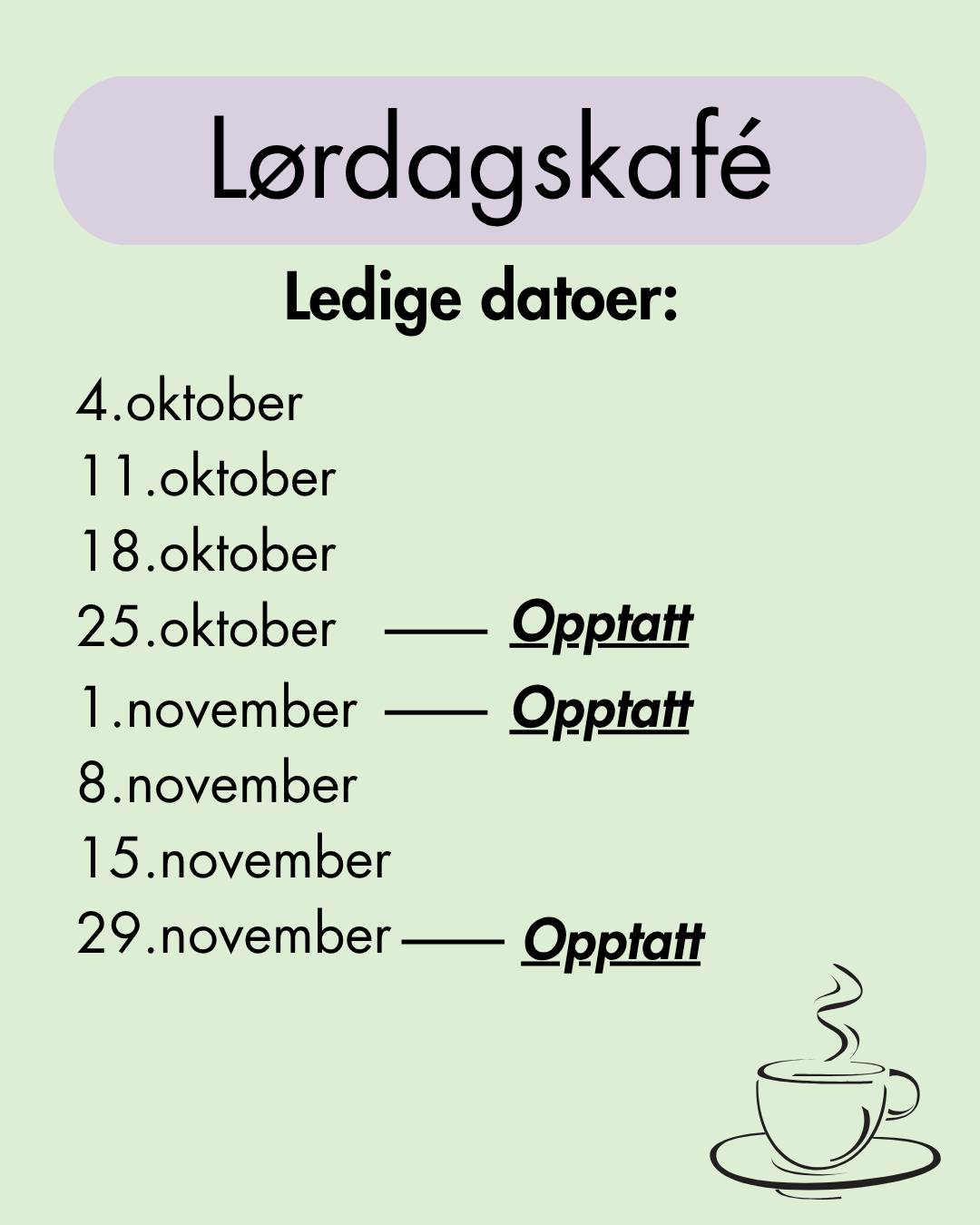 Under er en liste over datoer som det allerede er planlagt kafé 😊